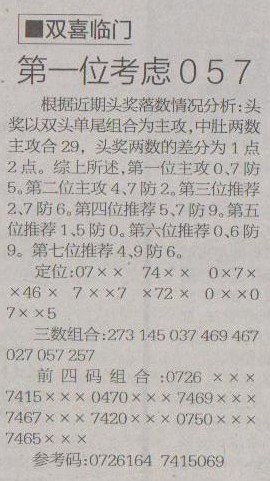【双喜临门】第1206预测信息<特区报>