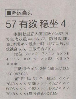 【鸿运当头】第1207预测信息<特区报>