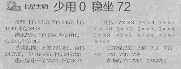 【七星大师】第1208预测信息<特区报>