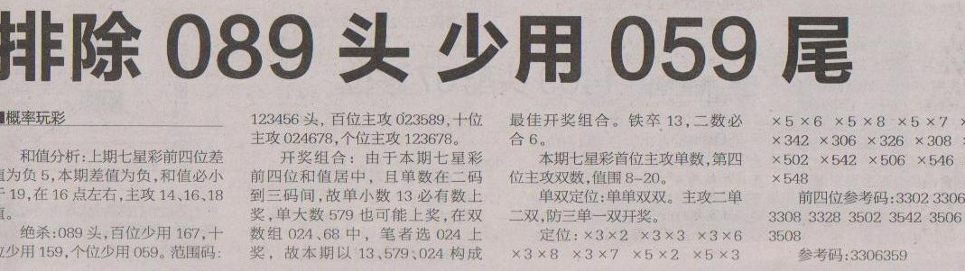 【概率玩彩】第1210预测信息<特区报>
