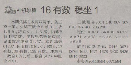 【神机妙算】第1215预测信息<特区报>