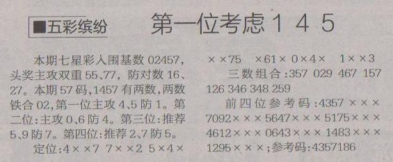 【五彩缤纷】第1217预测信息<特区报>
