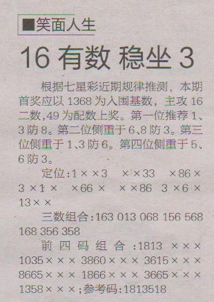 【笑面人生】第1219预测信息<特区报>