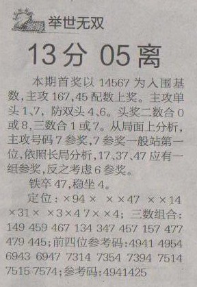 【举世无双】第1219预测信息<特区报>