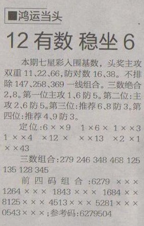 【鸿运当头】第1222预测信息<特区报>