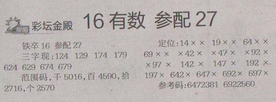 【彩坛金殿】第1222预测信息<特区报>