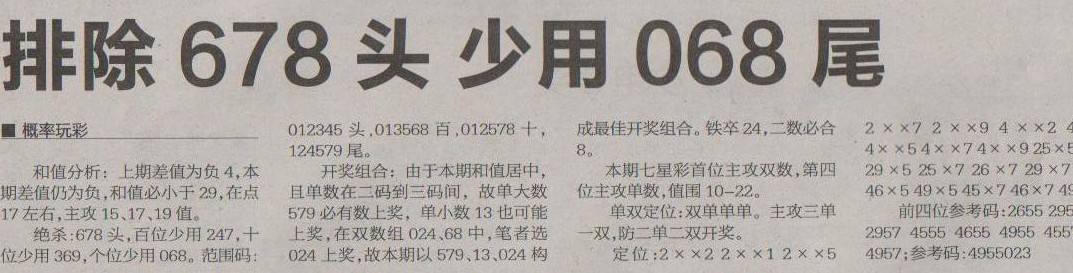 【概率玩彩】第1224预测信息<特区报>