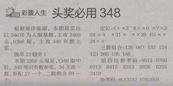 【彩票人生】第1225预测信息<特区报>