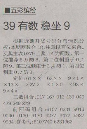 【五彩缤纷】第1225预测信息<特区报>