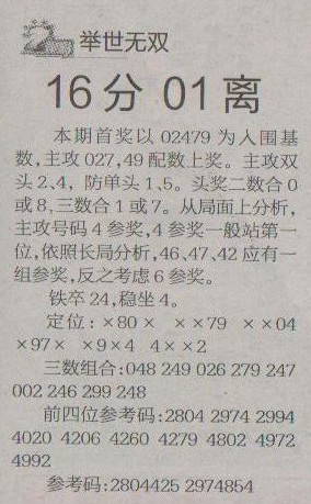 【举世无双】第1225预测信息<特区报>