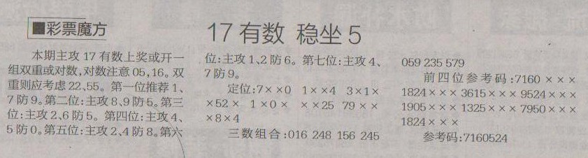 【彩票魔方】第1226预测信息<特区报>