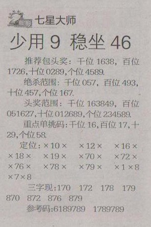 【七星大师】第1227预测信息<特区报>