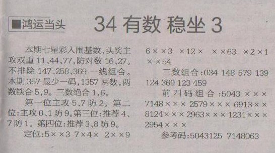 【鸿运当头】第1228预测信息<特区报>