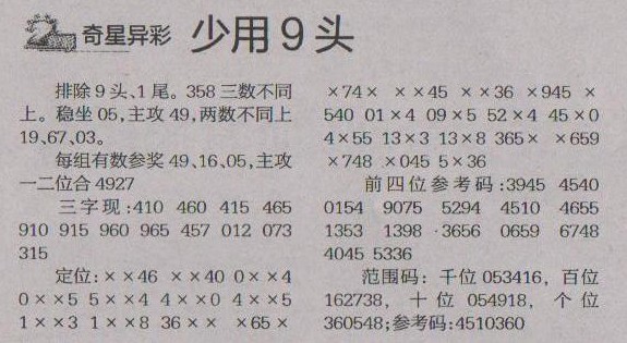 【奇星异彩】第1228预测信息<特区报>