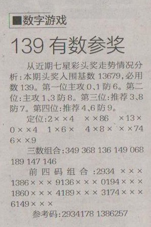 【数字游戏】第1234预测信息<特区报>