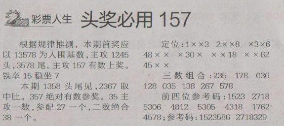 【彩票人生】第1234预测信息<特区报>