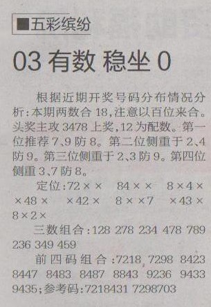 【五彩缤纷】第1234预测信息<特区报>