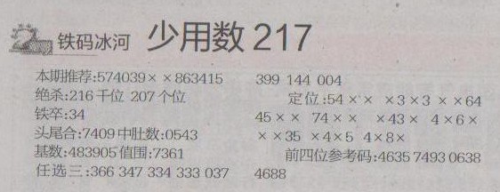 【铁码冰河】第1234预测信息<特区报>