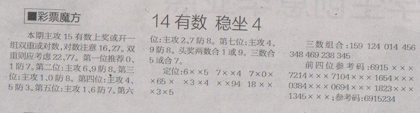 【彩票魔方】第1235预测信息<特区报>