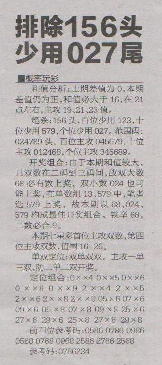 【概率玩彩】第1235预测信息<特区报>
