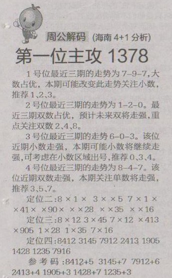 【周公解码】第1235预测信息<特区报>