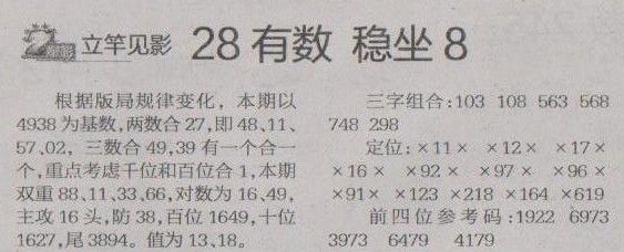 【立竿见影】第1236预测信息<特区报>