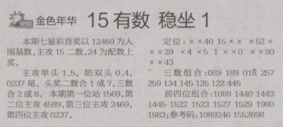 【金色年华】第1236预测信息<特区报>