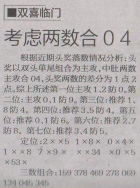 【双喜临门】第1237预测信息<特区报>