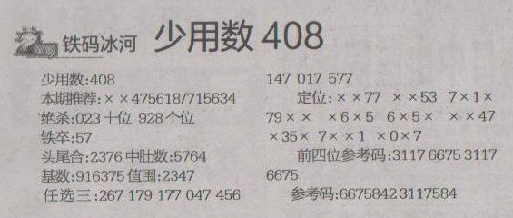 【铁码冰河】第1237预测信息<特区报>