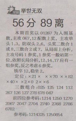 【举世无双】第1237预测信息<特区报>