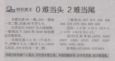 【世纪奖王】第1239预测信息<特区报>