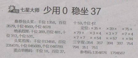 【七星大师】第1239预测信息<特区报>