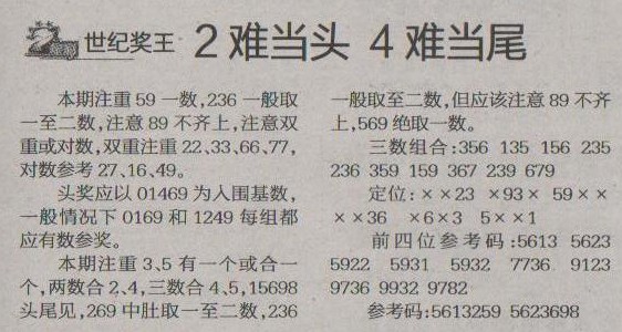 【世纪奖王】第1240预测信息<特区报>