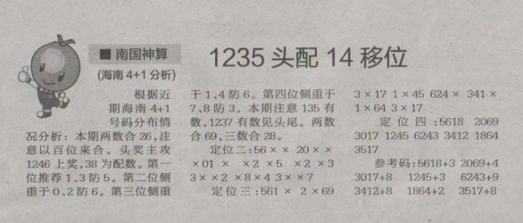 【南国神算】第1241预测信息<特区报>