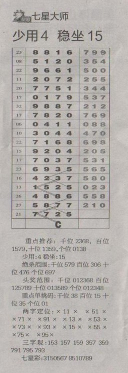 【七星大师】第1241预测信息<特区报>