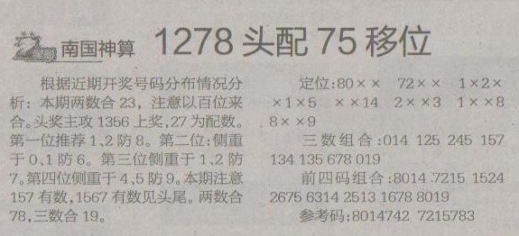 【南国神算】第1242预测信息<特区报>