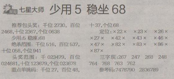 【七星大师】第1242预测信息<特区报>