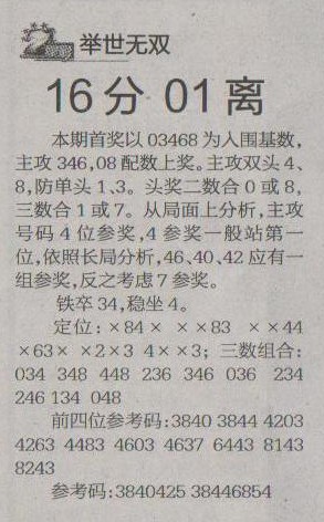 【举世无双】第1243预测信息<特区报>