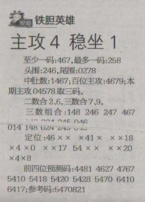 【铁胆英雄】第1243预测信息<特区报>