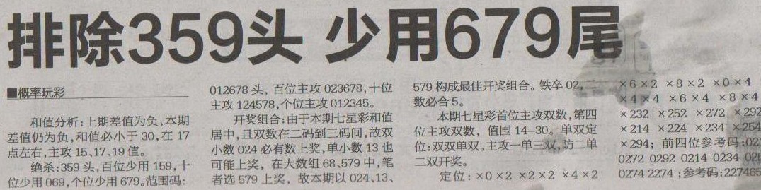 【概率玩彩】第1243预测信息<特区报>