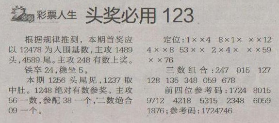 【彩票人生】第1245预测信息<特区报>