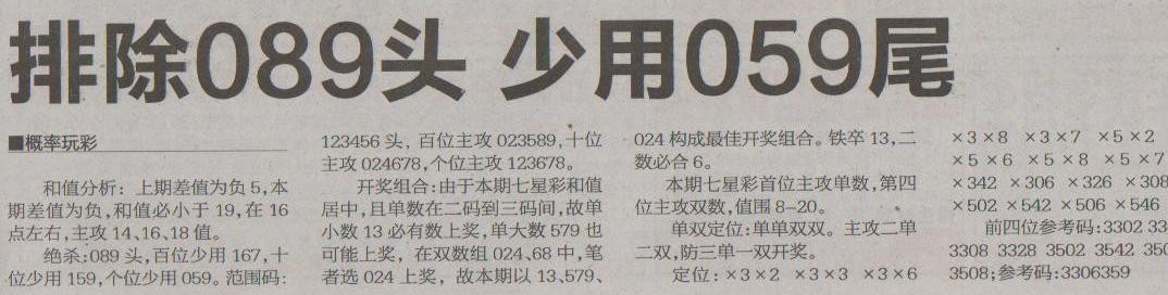【概率玩彩】第1245预测信息<特区报>