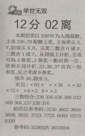 【举世无双】第1245预测信息<特区报>