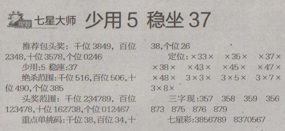 【七星大师】第1245预测信息<特区报>
