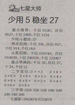 【七星大师】第1247预测信息<特区报>