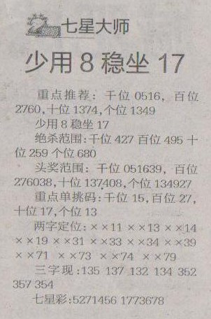 【七星大师】第1250预测信息<特区报>