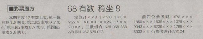 【彩票魔方】第1253预测信息<特区报>