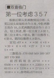 【双喜临门】第1254预测信息<特区报>