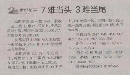 【世纪奖王】第1255预测信息<特区报>