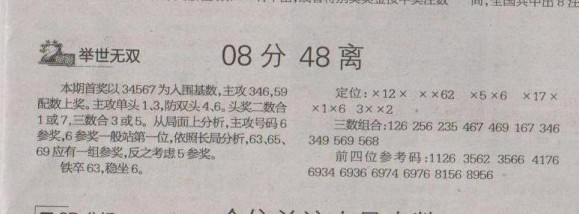 【举世无双】第1255预测信息<特区报>